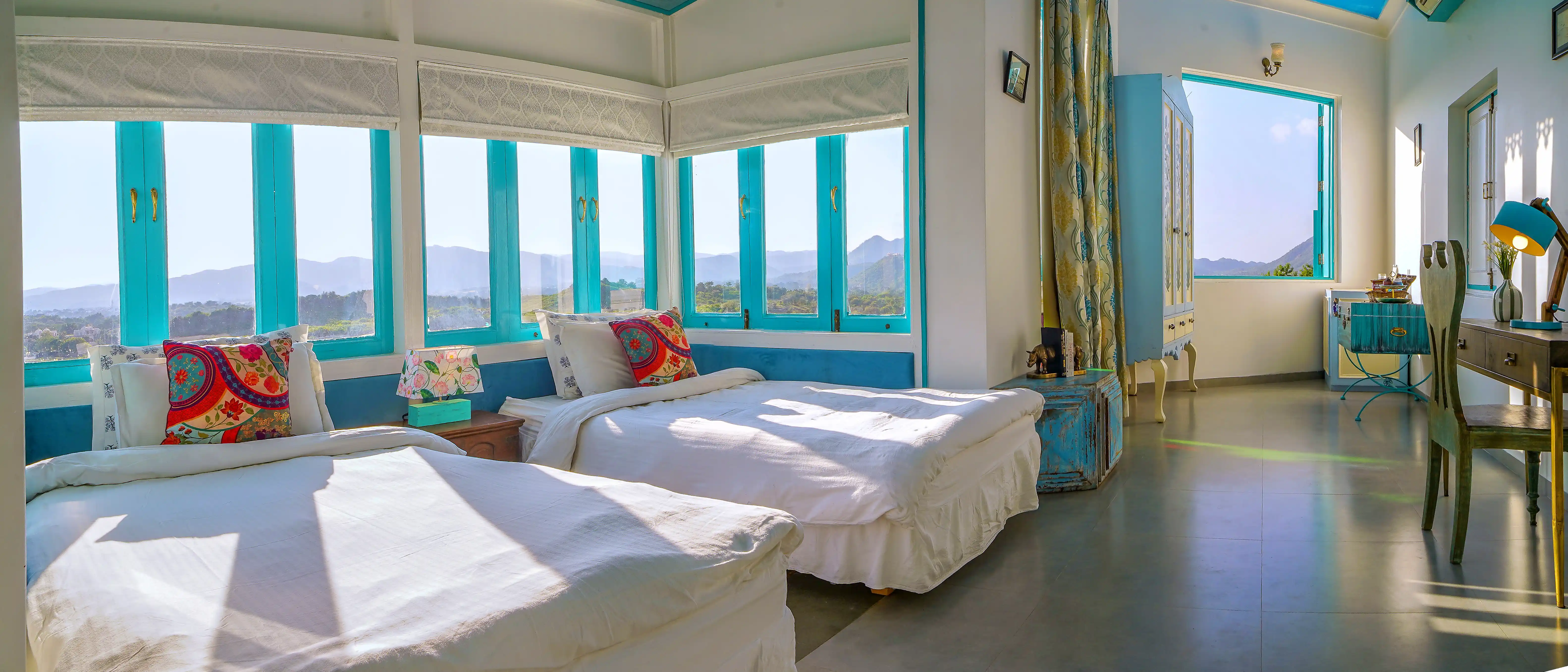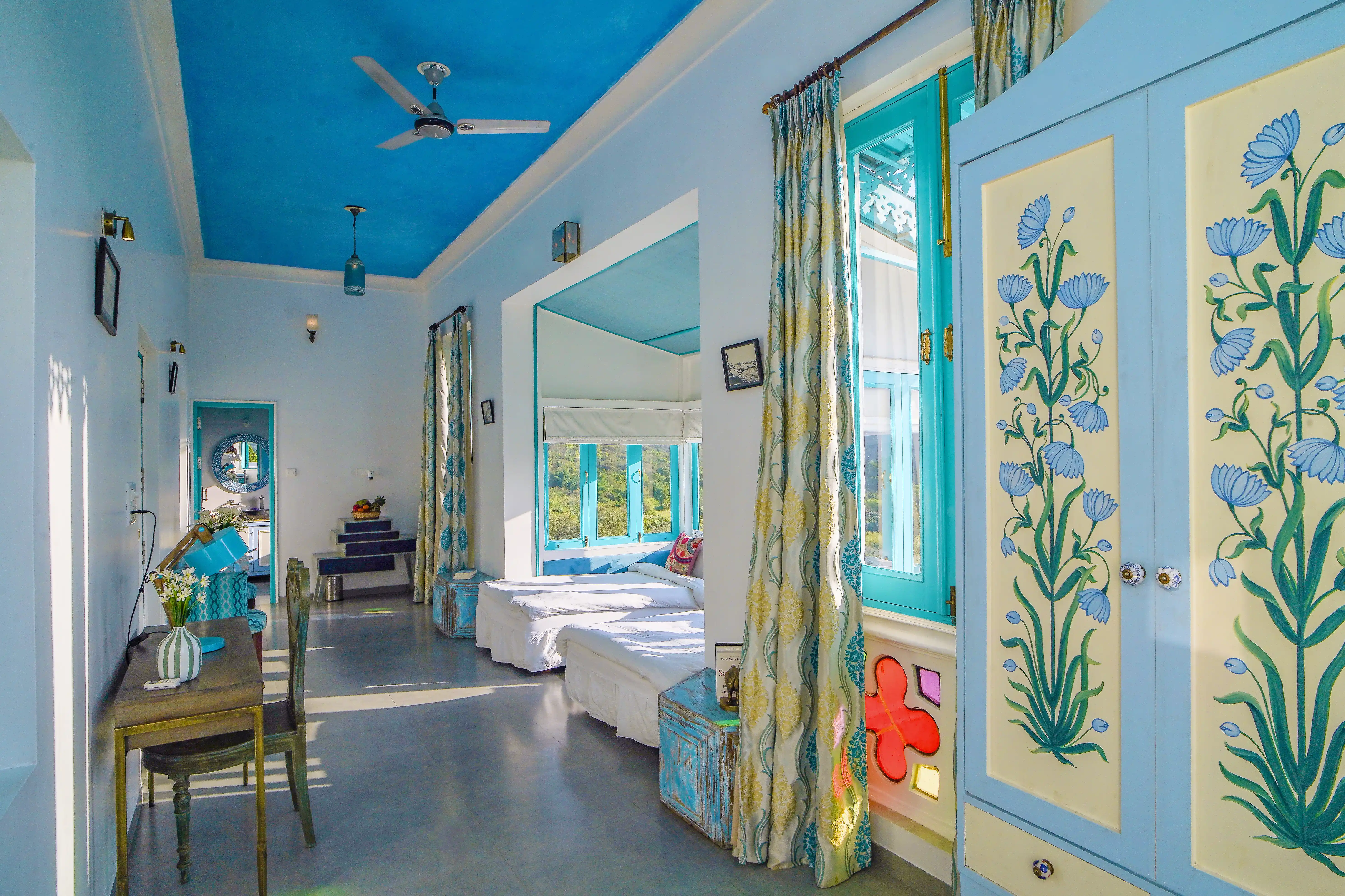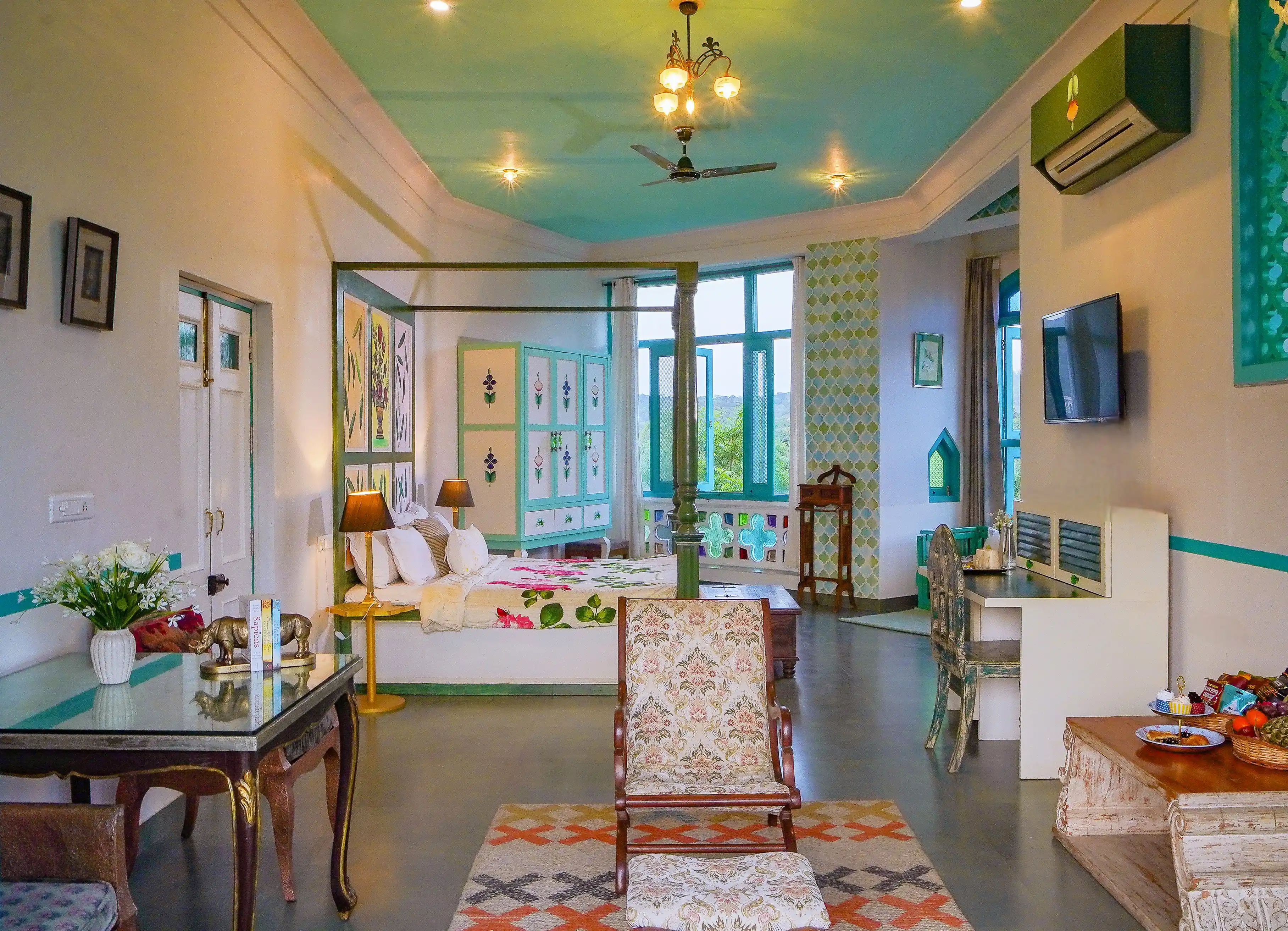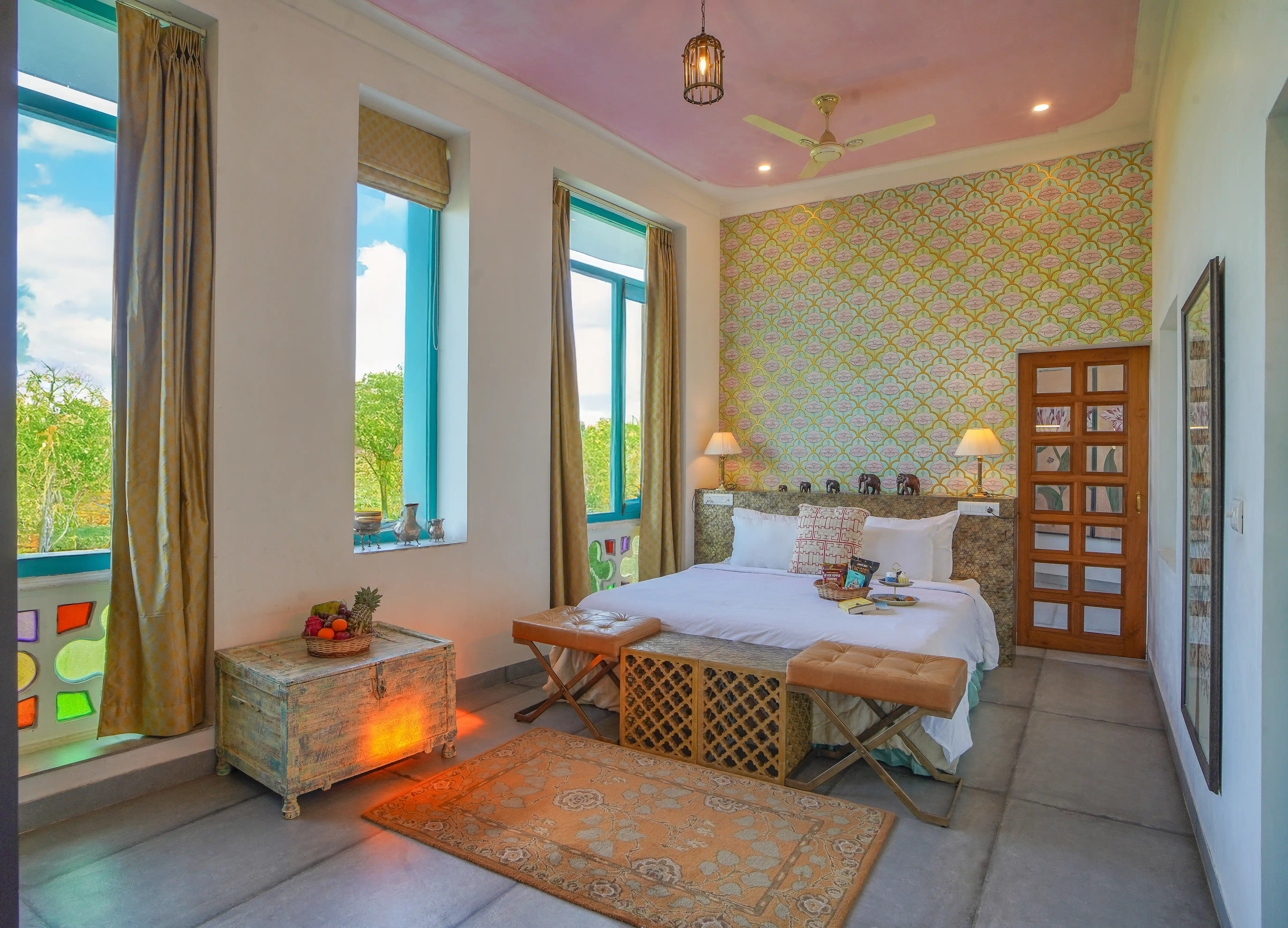 With uninterrupted views of the Aravalli Hills, The Jungalow Villa is located in a tranquil, green location in Sisarma Village. This palace-like retreat is surrounded by dense forests and orchards. Persian-style interiors, spacious bedrooms, lavish furnishing and plenty of heritage décor welcome you to this luxurious sanctuary. Spend your evenings under open skies, at your private pool, or enjoy a drink outdoors as the sun sets over the hills. Watch bespoke solitude meet luxury at The Jungalow by Horizon Hospitalities.